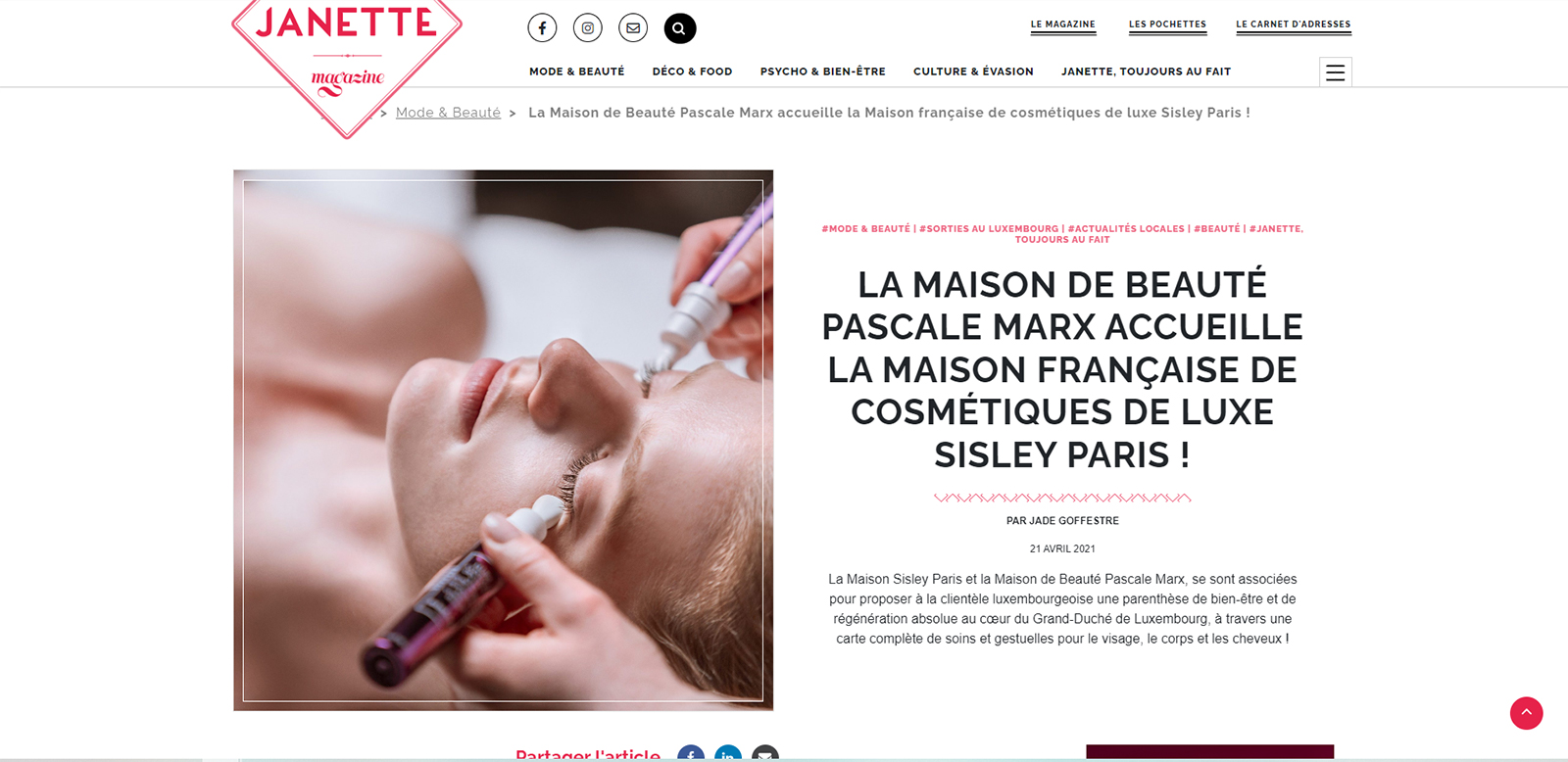 La Maison Sisley Paris et la Maison de Beauté Pascale Marx ont uni leurs forces …